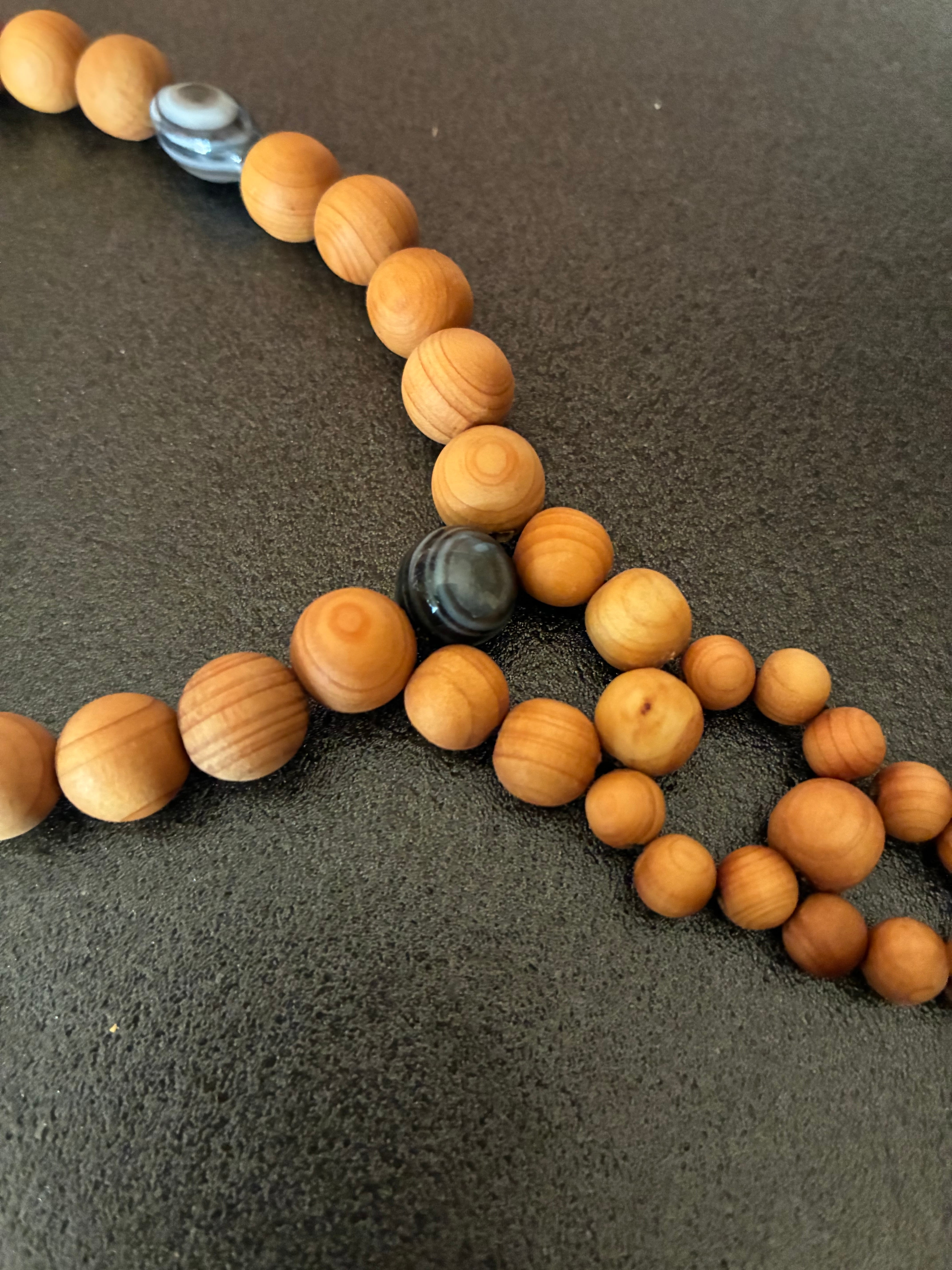 崖柏木とは、中国四川省の奥地、断崖絶壁に自生するヒノキ科の木です。 優しい芳香を持つ香木であり、古くから薬剤として使われ、リラックス効果や免疫力を高めるといわれています。 人生逆境の場面が訪れようとも、崖柏木のように強くたくましい心が持てるようになり、困難に立ち向かう手助けになるといわれています。