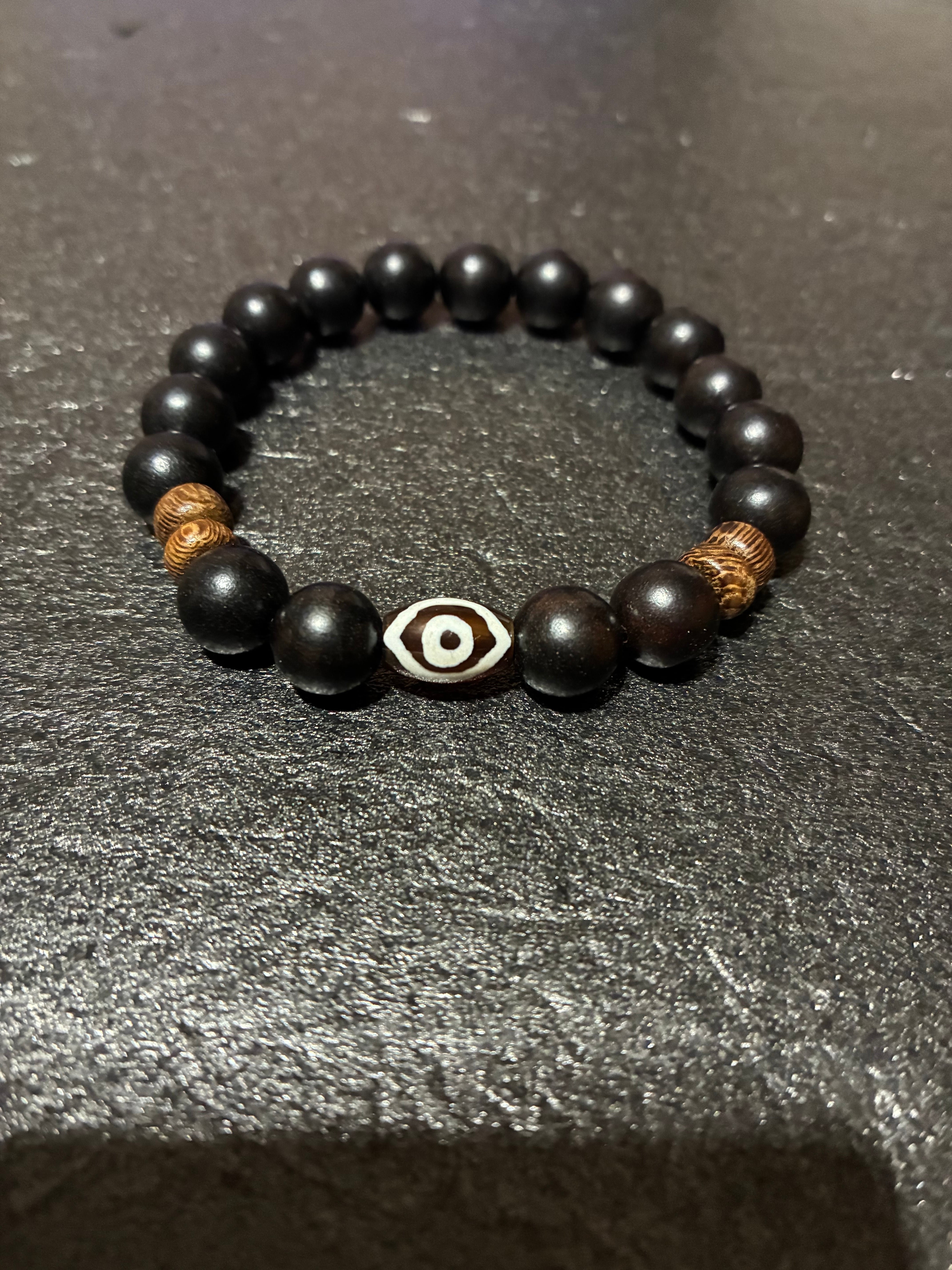 d-399 黒檀 二眼天珠 ウッド 腕輪念珠 ブレスレット