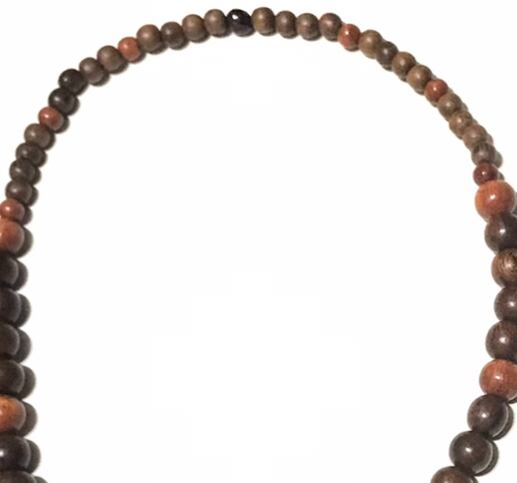 ウッドビーズにワンポイントでガーネットを使ってます。
