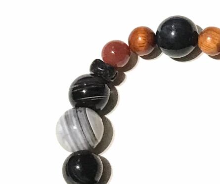 縞瑪瑙はデザインの都合上意図的に若干のいびつさがあるビーズを使ってます。