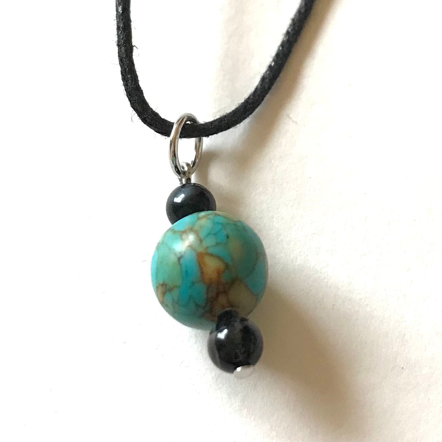 トップのスタビライズドターコイズは10mm玉の染めを使っています。
