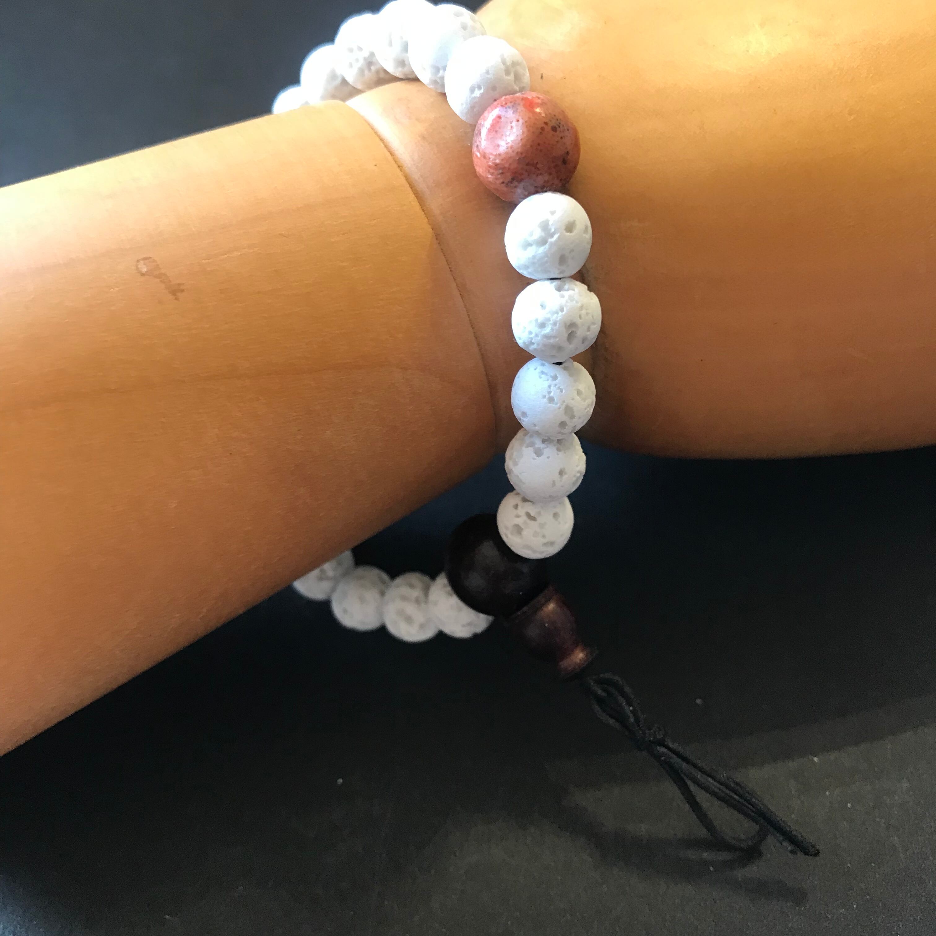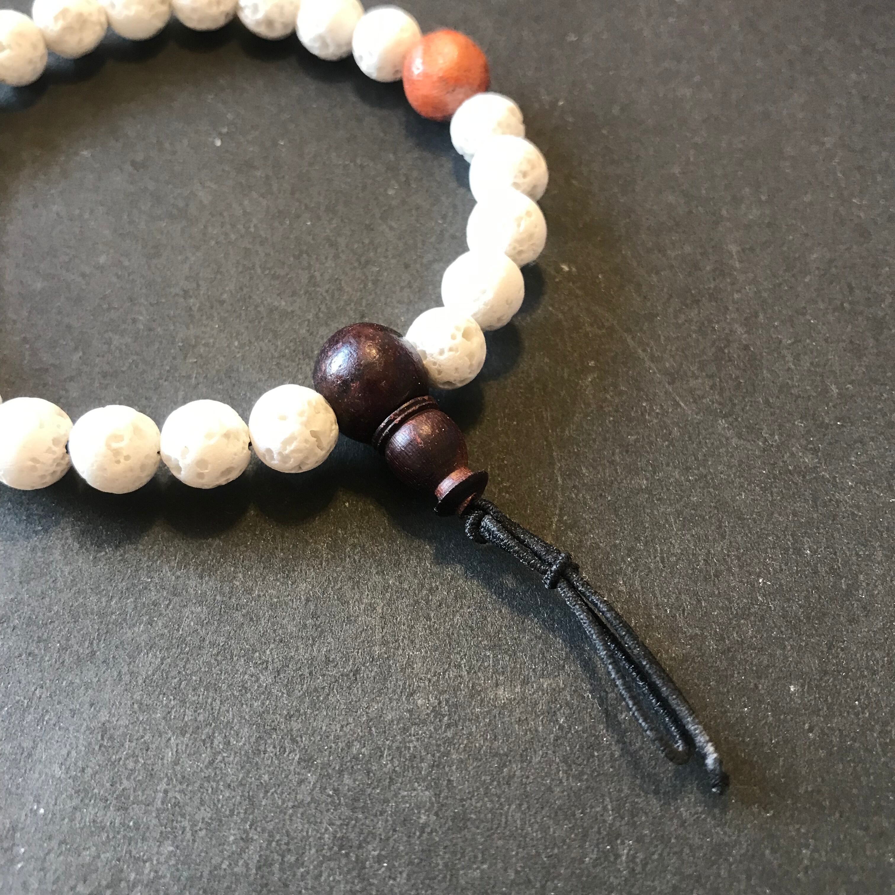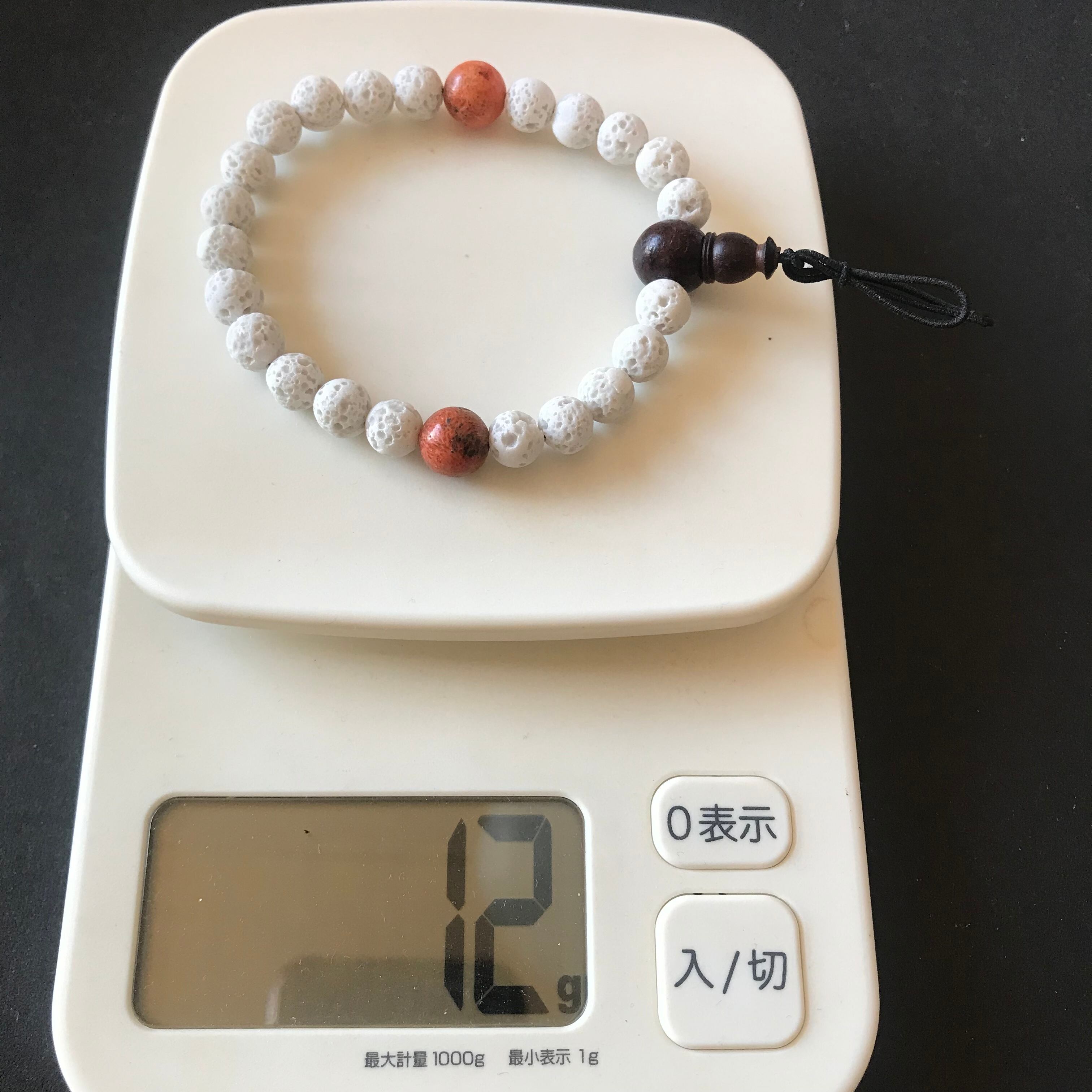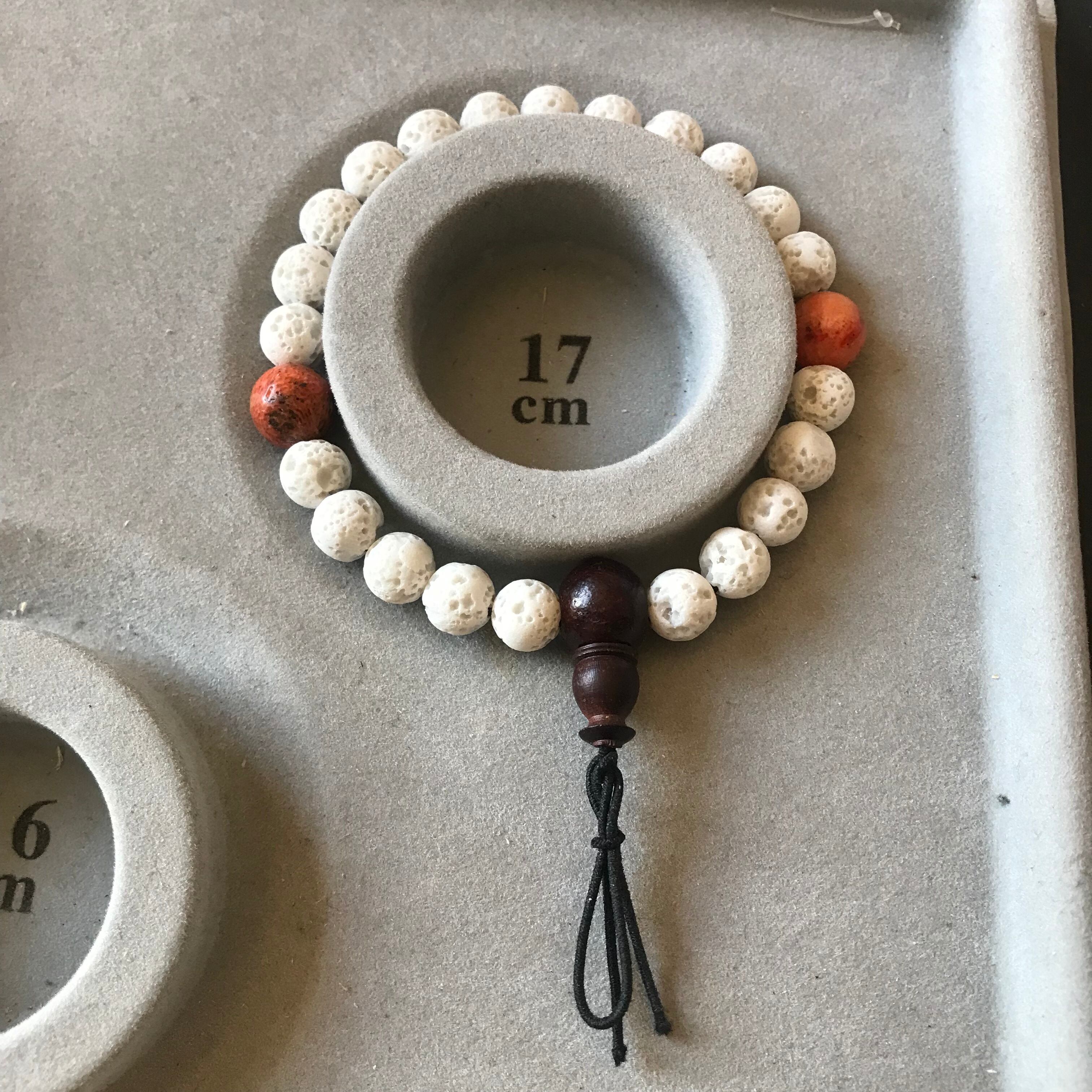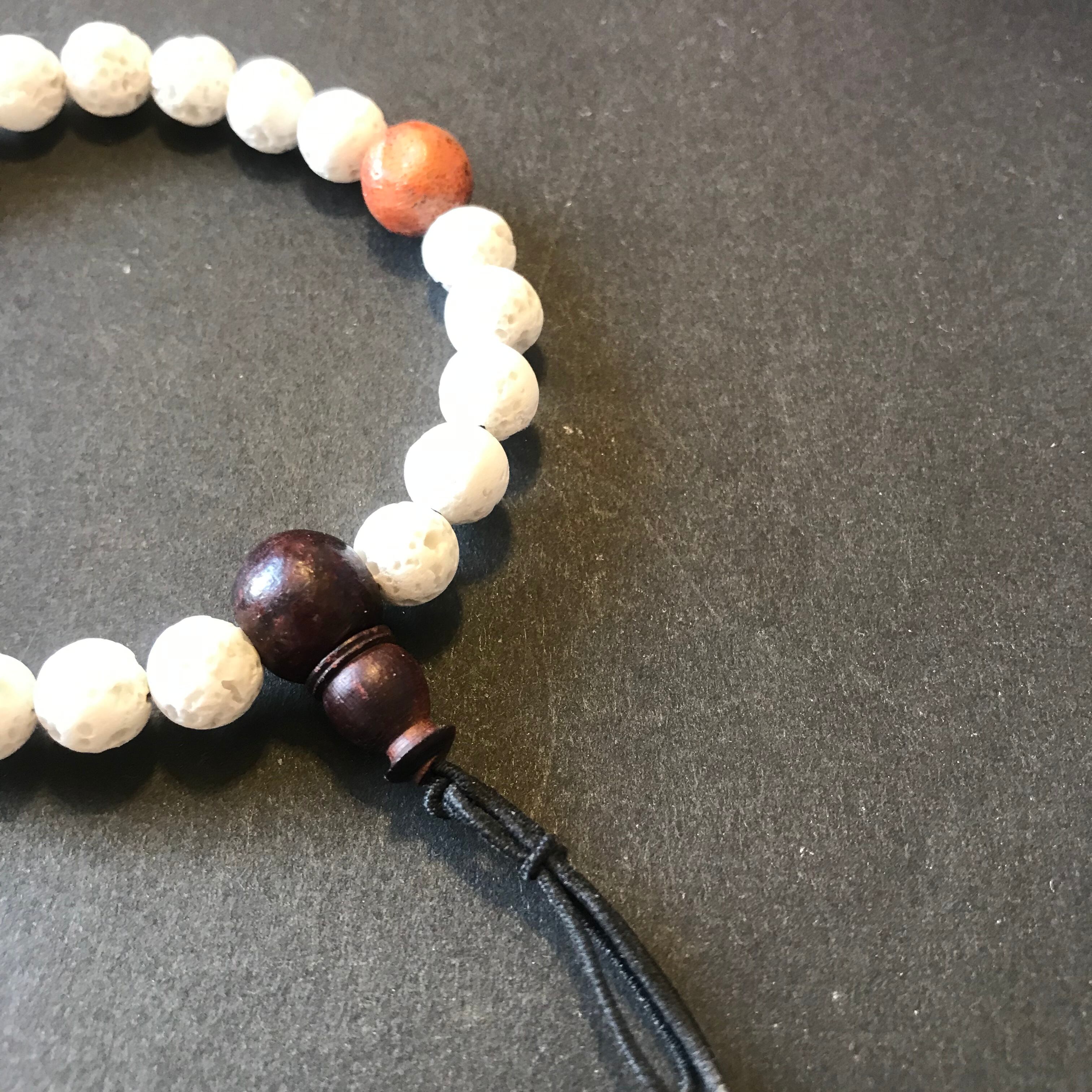 ラヴァストーン(溶岩)のホワイトとスポンジ珊瑚の腕輪念珠。