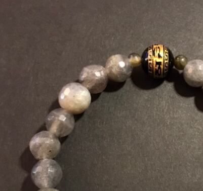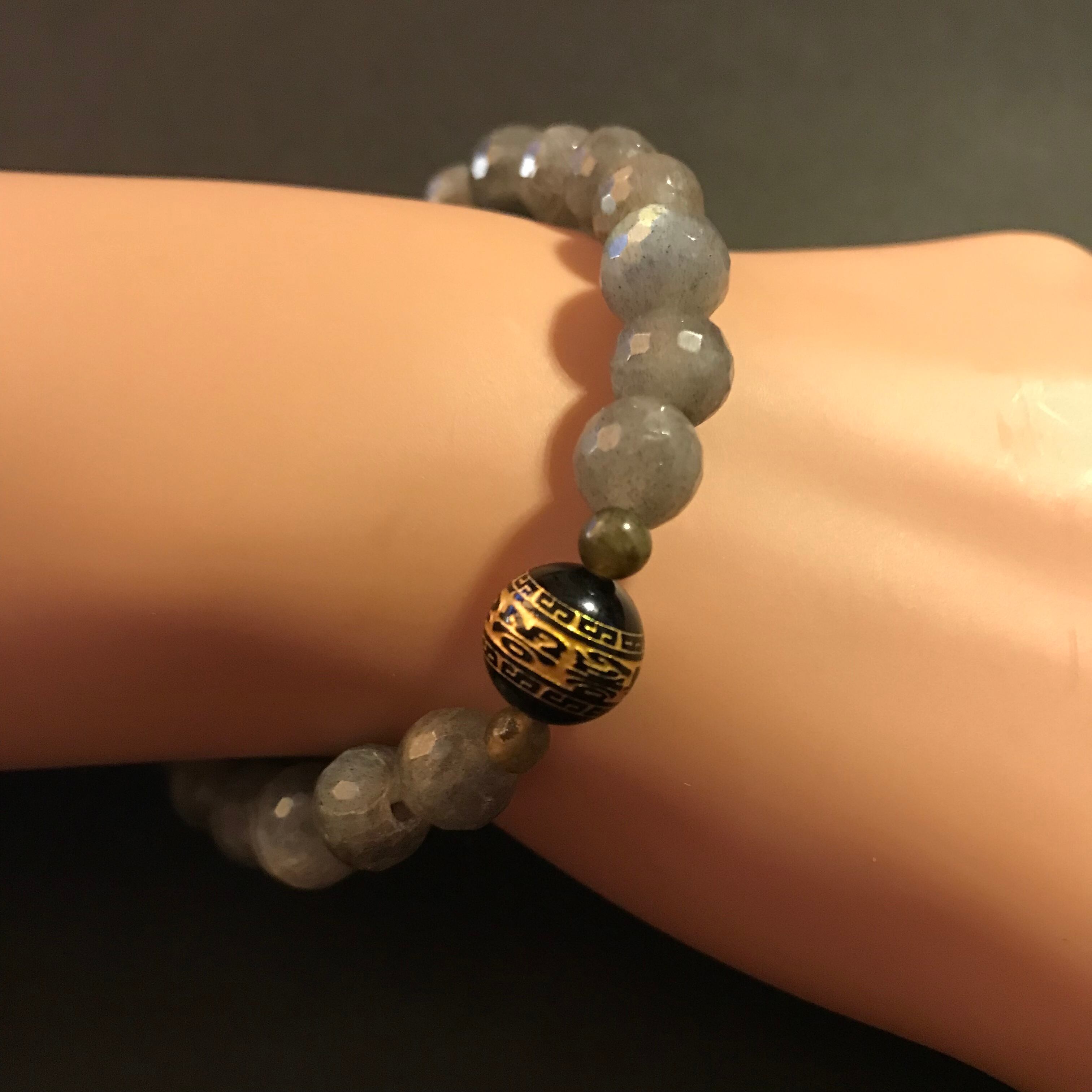 d-314 ラブラドライト オニキス 六字真言 ブレスレット 腕輪念珠 念珠 数珠 お守り 天然石
