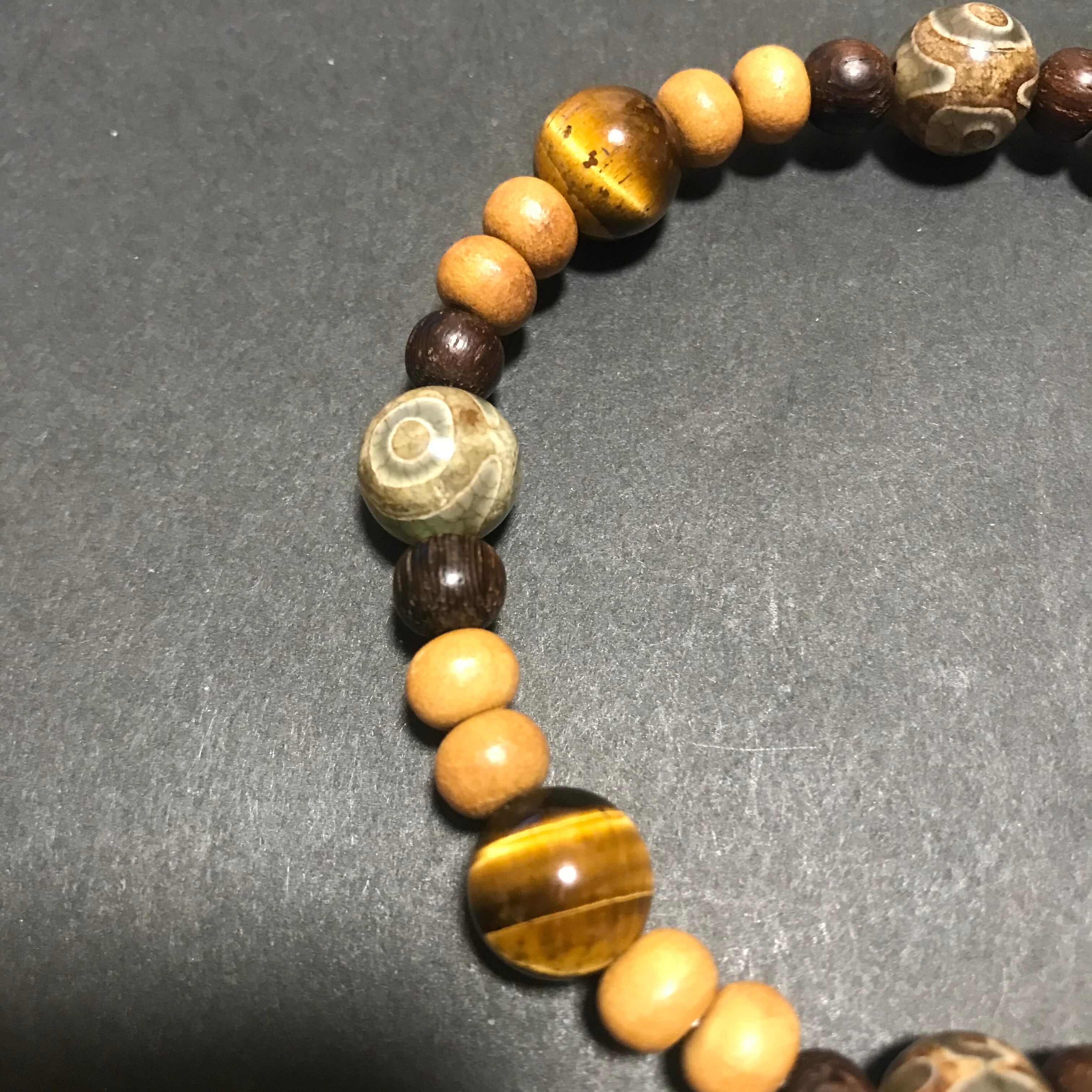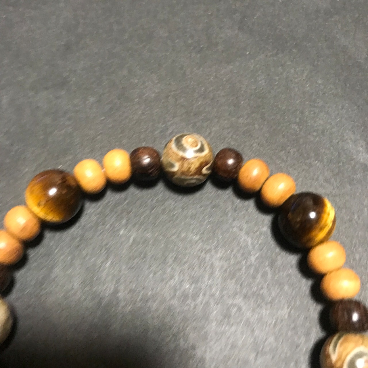 d-334 タイガーアイ 白檀 三眼天珠 腕輪念珠 念珠 数珠 お守り