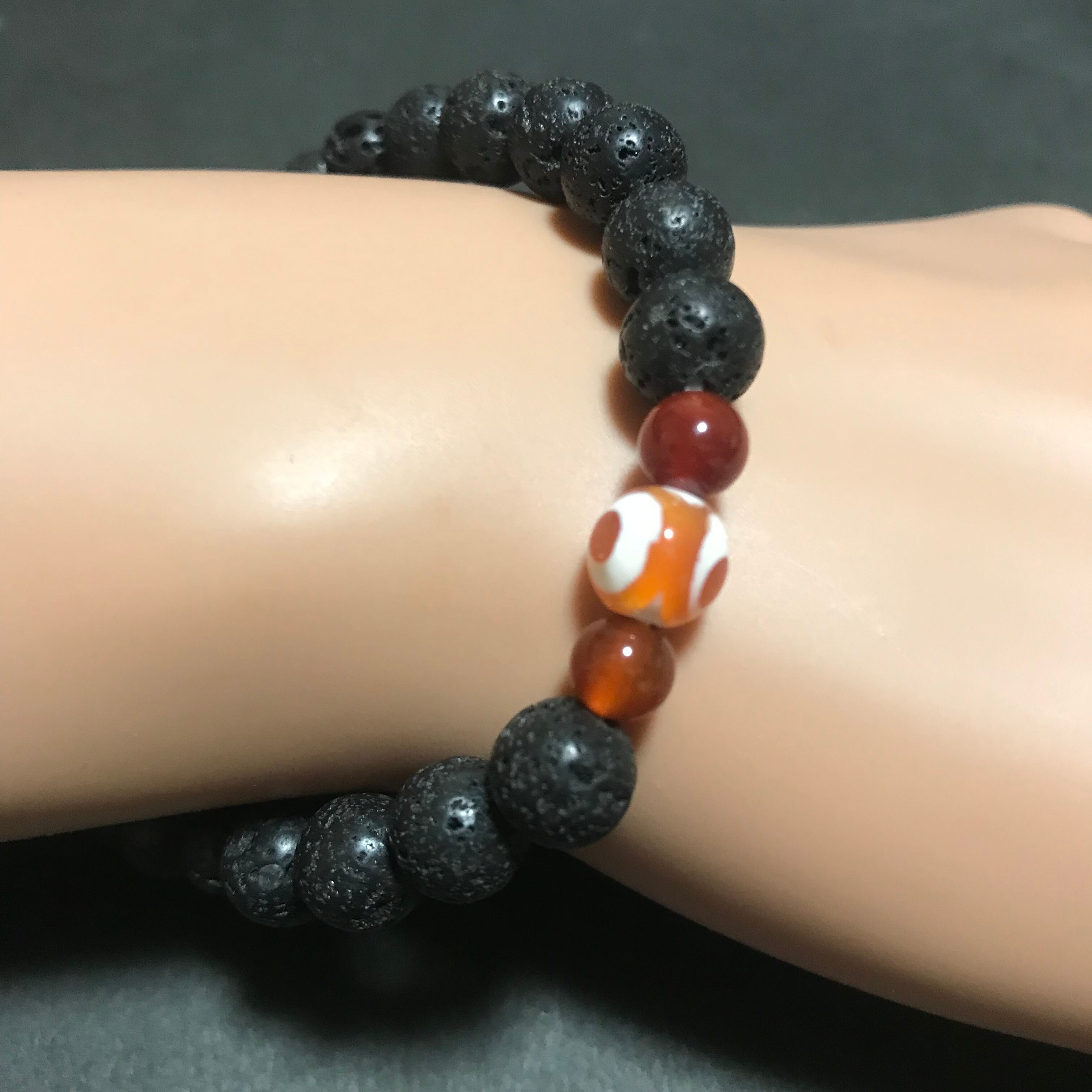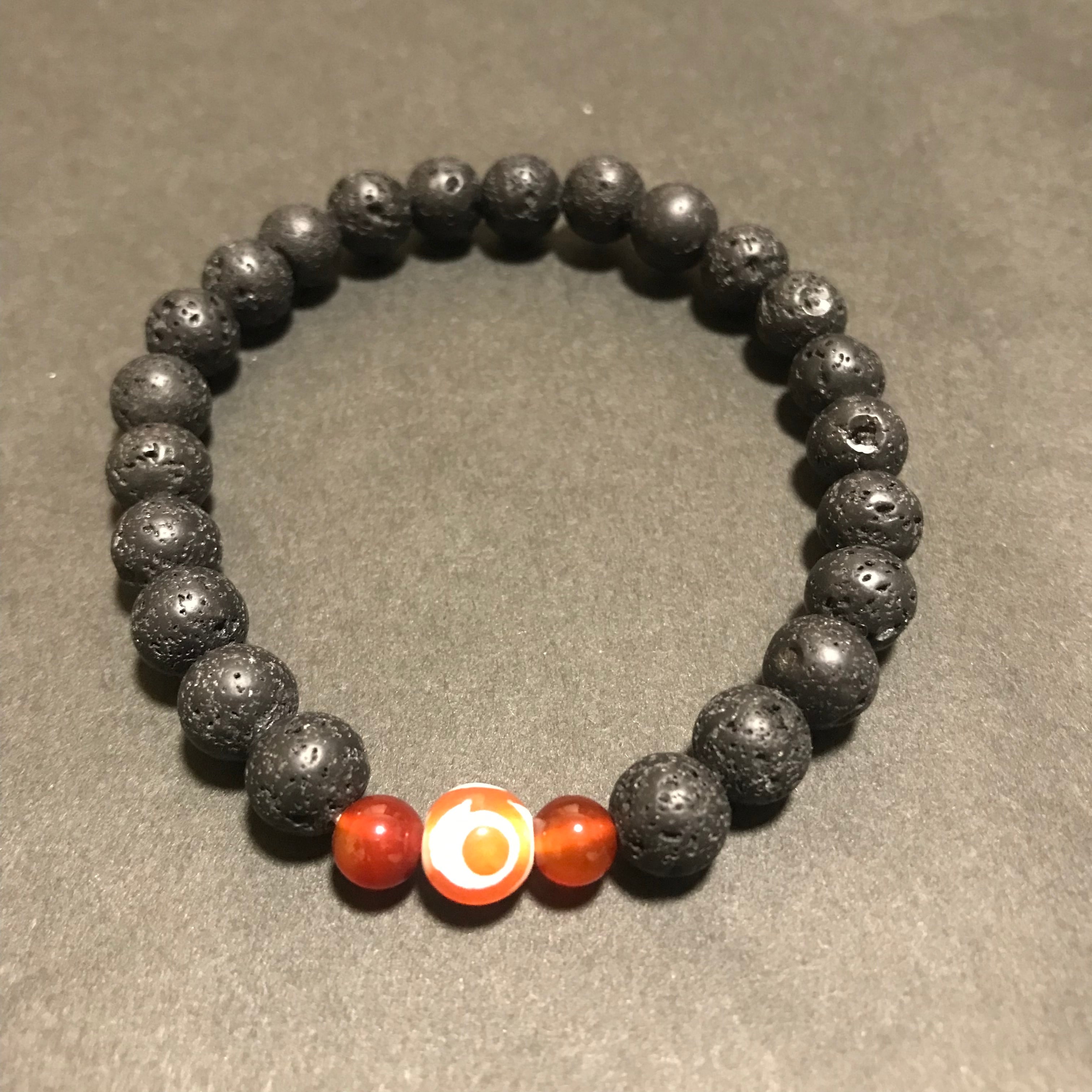 d-343 溶岩 ラヴァストーン 三眼天珠 赤瑪瑙 ブレスレット 腕輪念珠 念珠 数珠