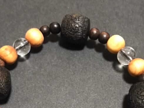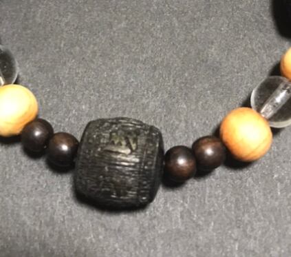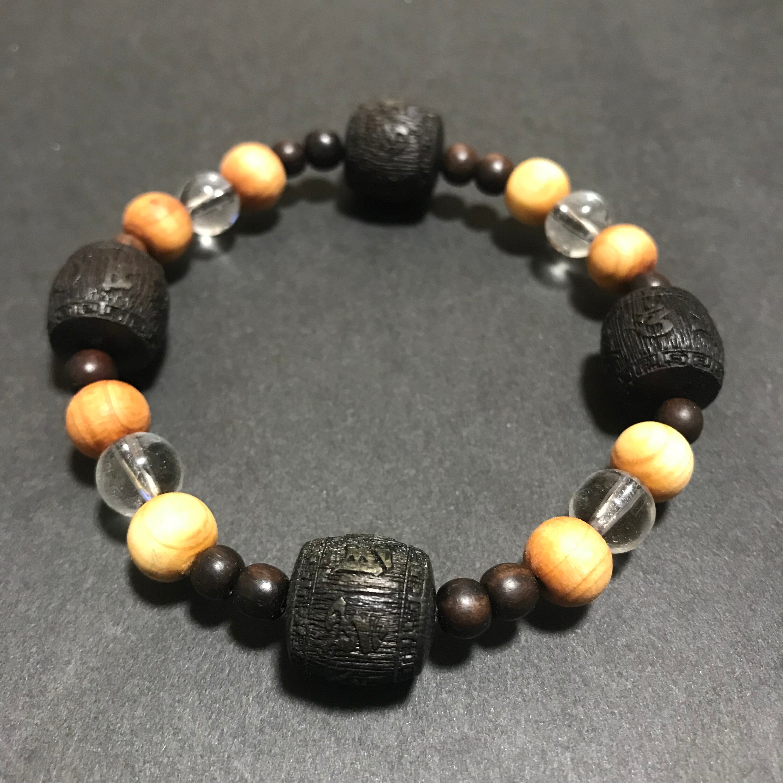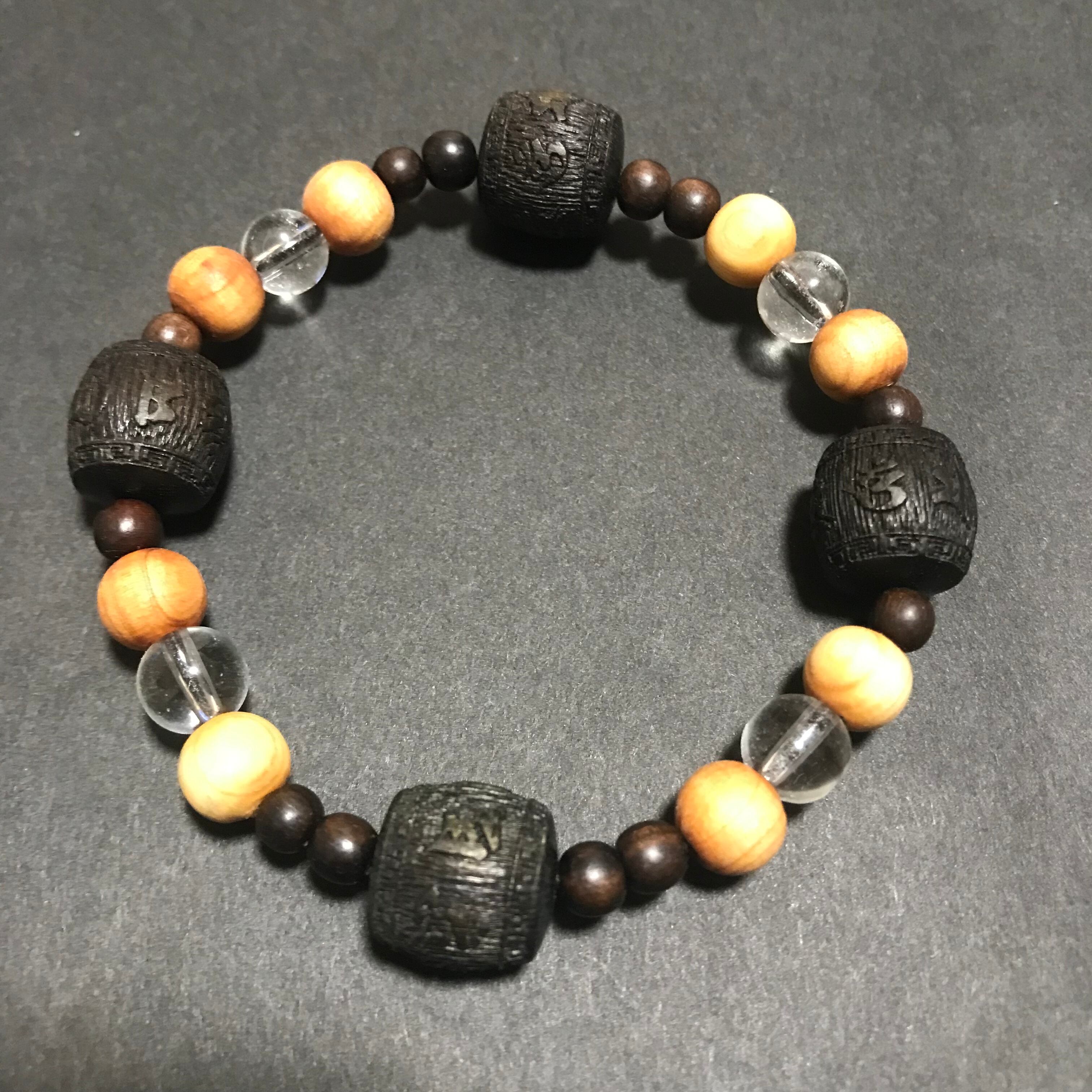 d-344 太行山崖柏 沈香 黒檀 水晶六字大明呪 腕輪念珠 念珠