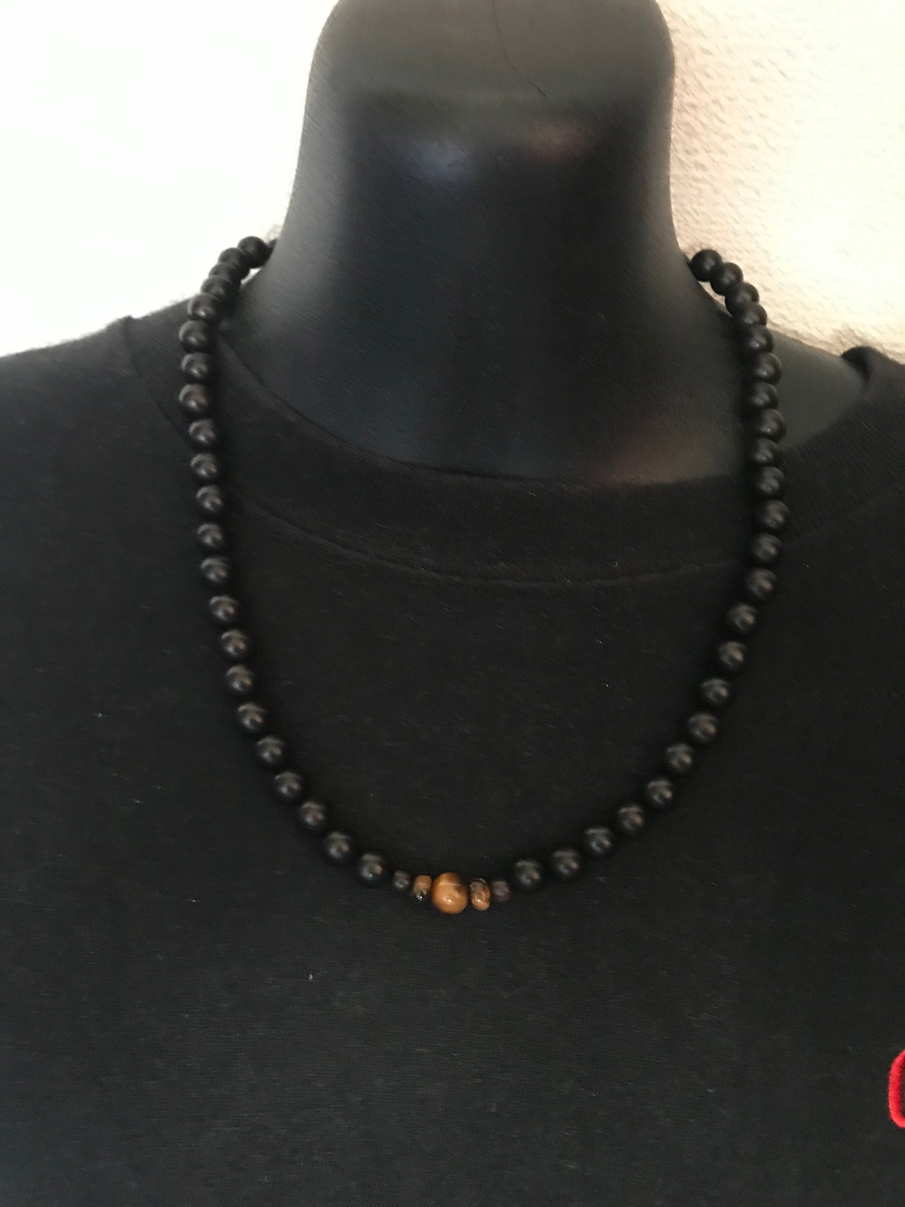 d-354 タイガーアイ 黒檀 ネックレス 約50cm