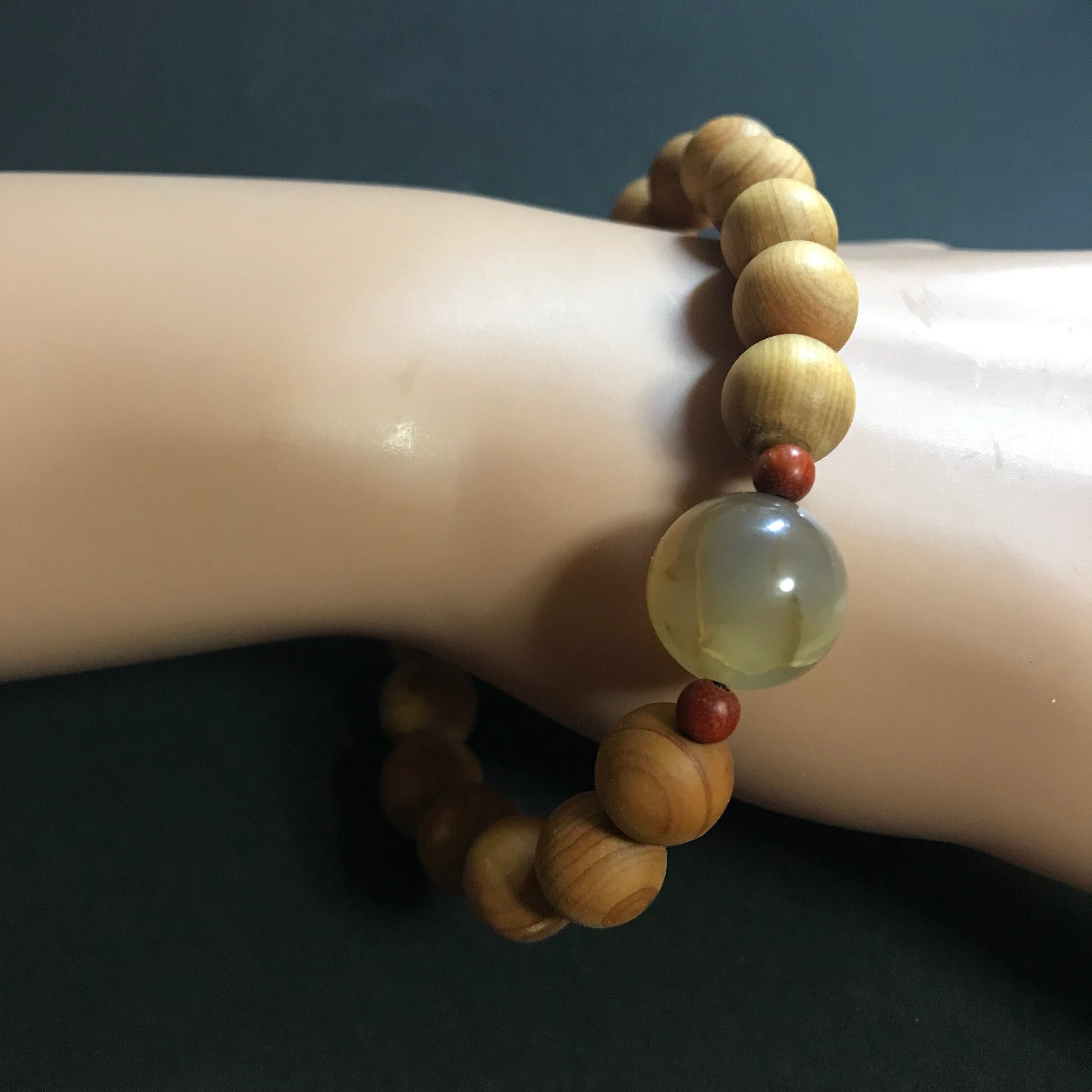 d-367 太行山崖柏 竜紋瑪瑙 レッドウッド 腕輪念珠 念珠 数珠 ブレスレット